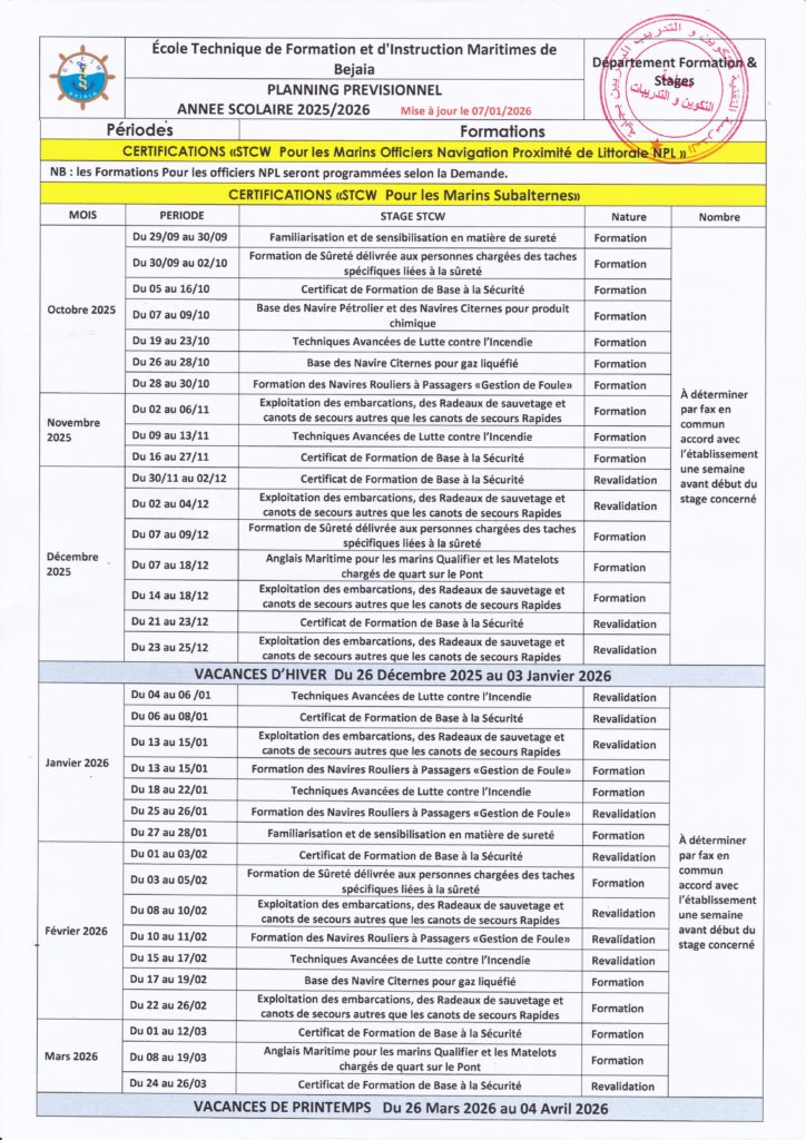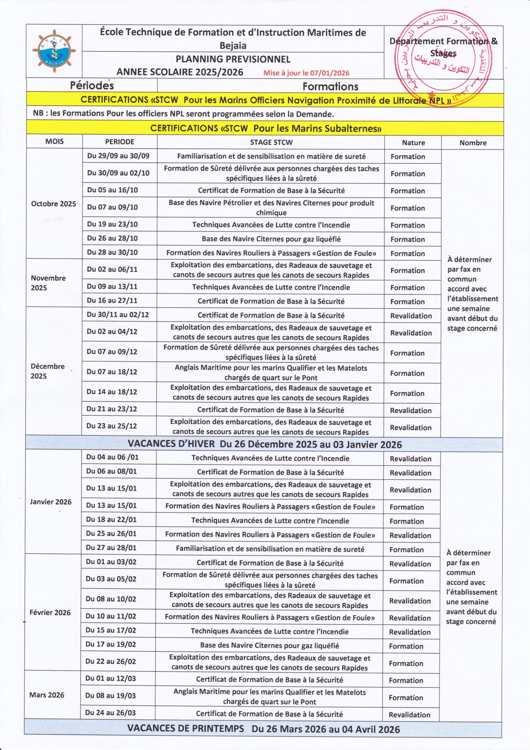Planning des formations